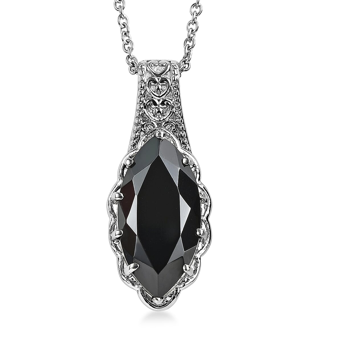 EverTrue Thai Black Spinel 10.00 ctw Pendant Necklace in Stainless Steel 20 Inches