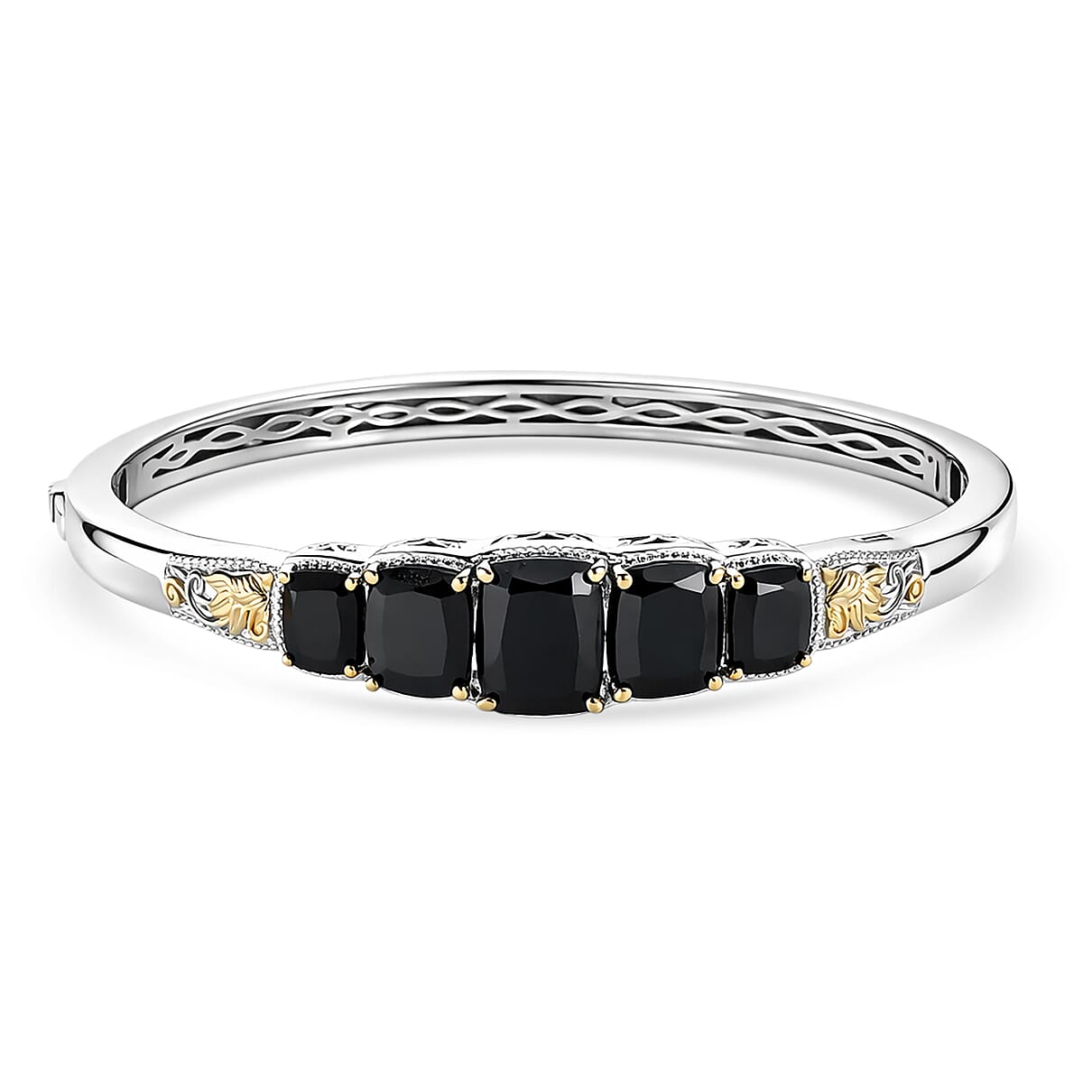 EverTrue Thai Black Spinel 19.15 ctw Floral Vines Bangle Bracelet in 18K YG Plated and Platinum Bond (6.50 In) (Del. in 7-10 Days)