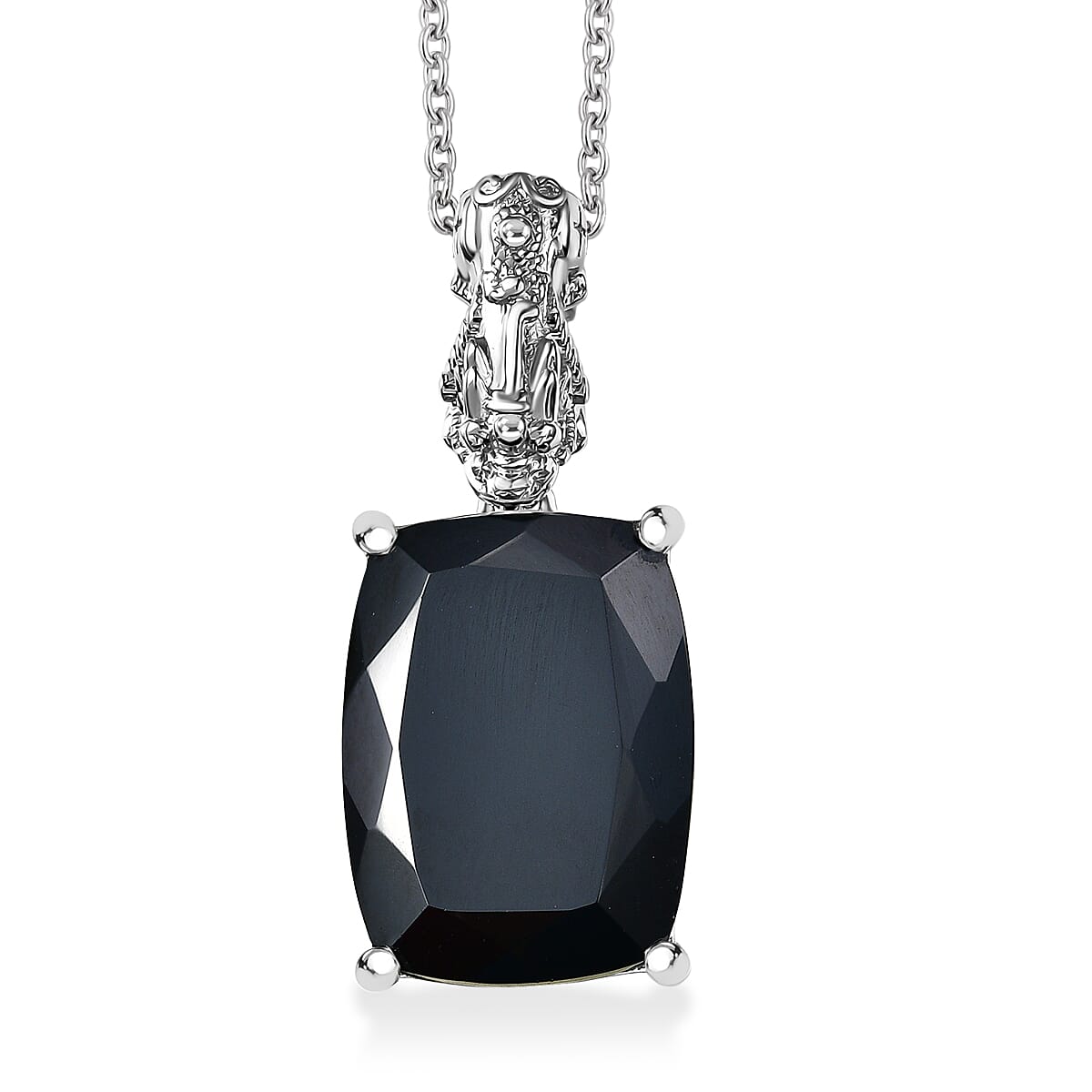 EverTrue Thai Black Spinel 22.70 ctw Pendant in Platinum Bond with Stainless Steel Necklace 20 Inches
