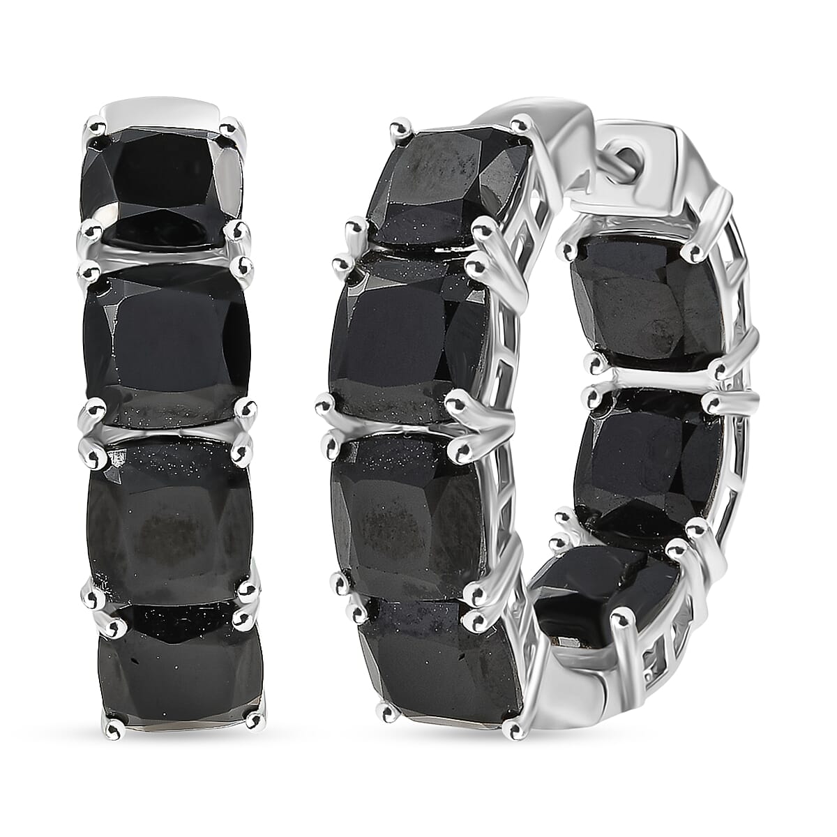 EverTrue Thai Black Spinel 29.65 ctw Royal Midnight Hoop Earrings in Platinum Bond (Del. in 7-10 Days)