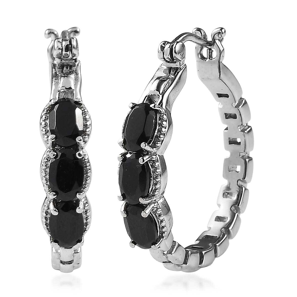 EverTrue Thai Black Spinel 3.60 ctw Earrings in Stainless Steel