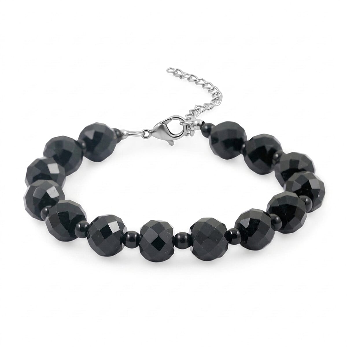 EverTrue Thai Black Spinel and Black Obsidian 80.00 ctw Beaded Bracelet in Stainless Steel (7.25 In)