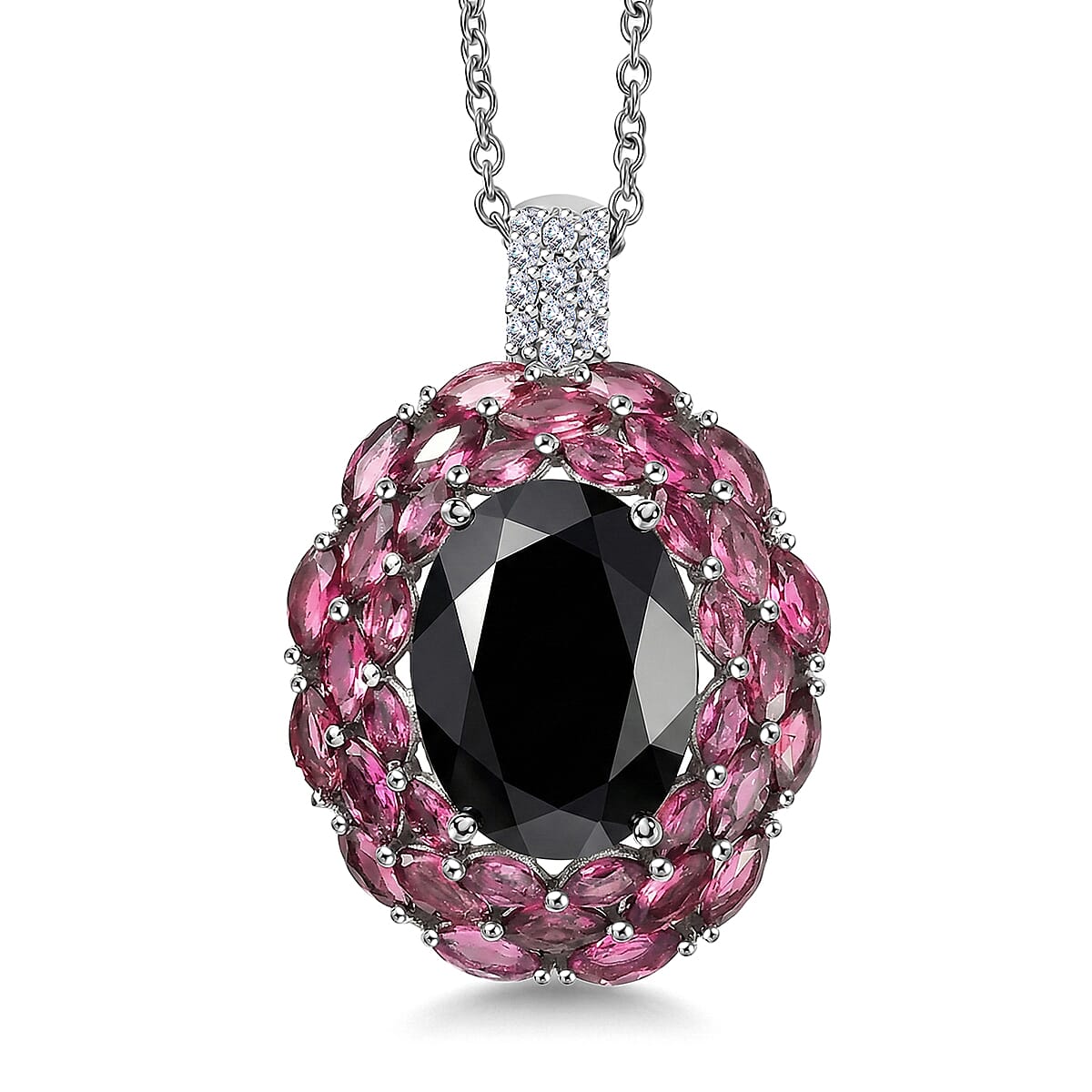 EverTrue Thai Black Spinel and Multi Gemstone 16.40 ctw Eclipse Majesty Pendant in Platinum Bond with Stainless Steel Necklace (20 Inches)