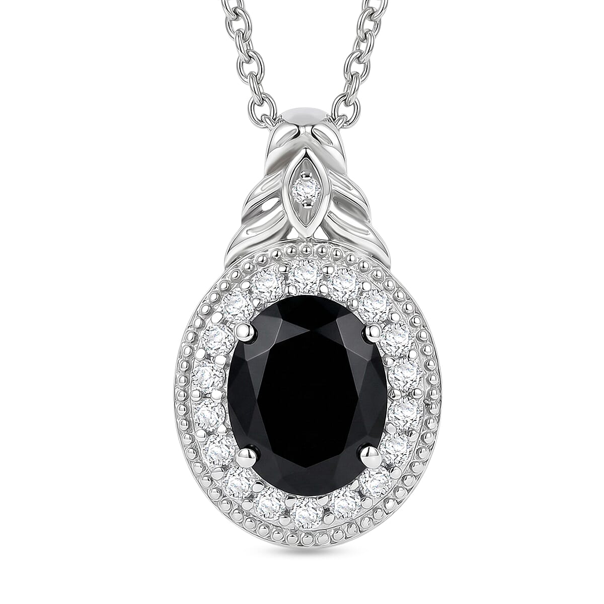 EverTrue Thai Black Spinel and White Zircon 4.15 ctw Pendant in Platinum Bond with Stainless Steel Necklace 20 Inches