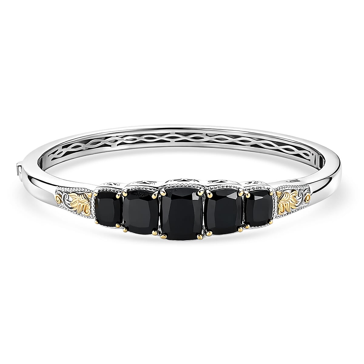 EverTrue Thai Black Spinel Bangle Bracelet in 18K YG Plated and Platinum Bond (7.25 In) 19.15 ctw