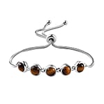EverTrue Tiger's Eye 5.65 ctw Bracelet in Platinum Bond Stainless Steel, Adjustable Bolo Bracelet