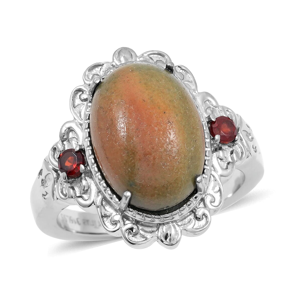 EverTrue Venus Jasper, Mozambique Garnet Ring in Stainless Steel 6.00 ctw (Size 10.0)