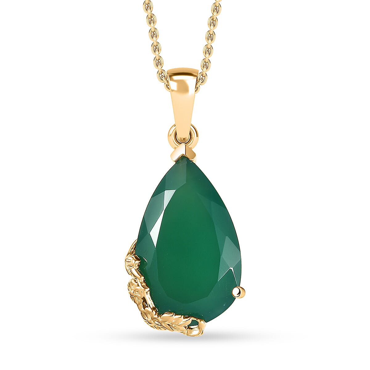 EverTrue Verde Onyx 11.65 ctw Garden Drop Pendant in 18K YG Plated with ION Plated YG Stainless Steel Necklace 20 Inches