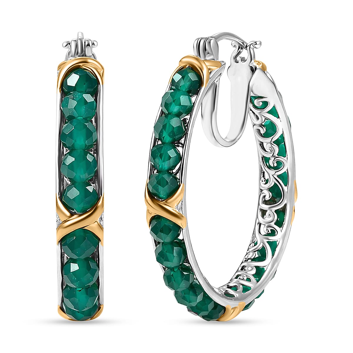 EverTrue Verde Onyx 16.80 ctw XOXO Hoop Earrings in 18K YG Plated and Platinum Bond