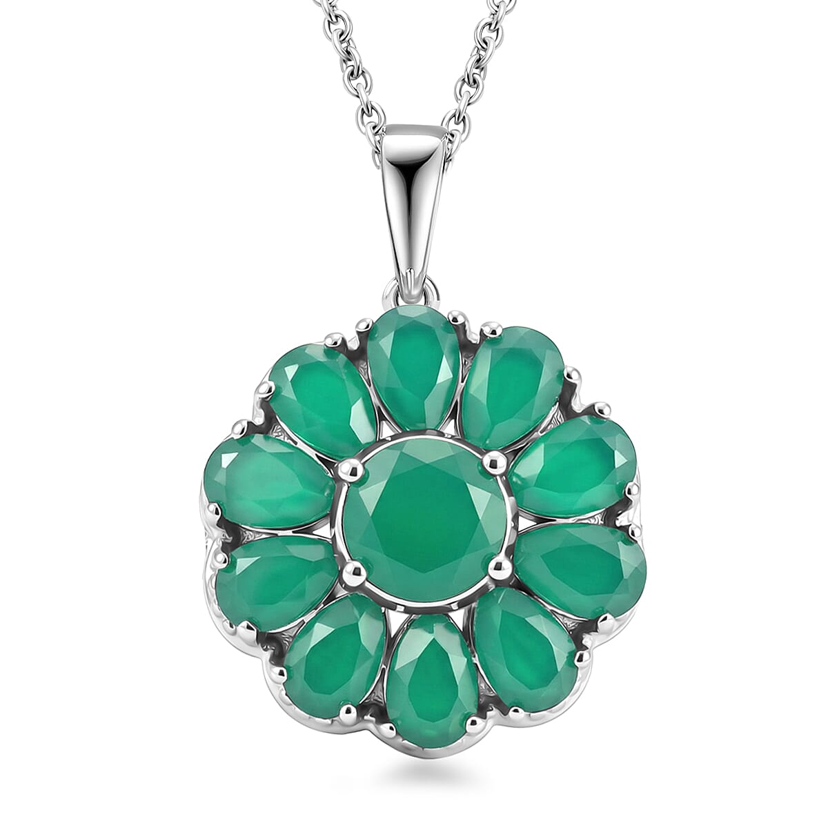 EverTrue Verde Onyx 5.80 ctw Pendant in Platinum Bond with Stainless Steel Necklace 20 Inches
