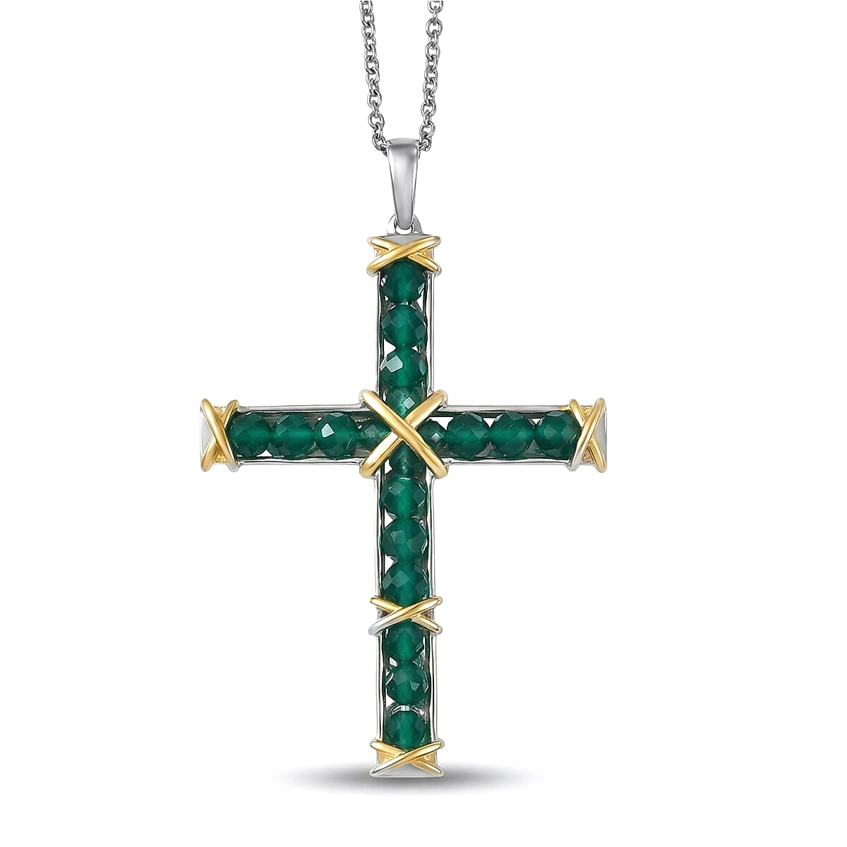 EverTrue Verde Onyx 7.50 ctw XOXO Cross Pendant in 18K YG Plated and Platinum Bond with Stainless Steel Necklace 20 Inches