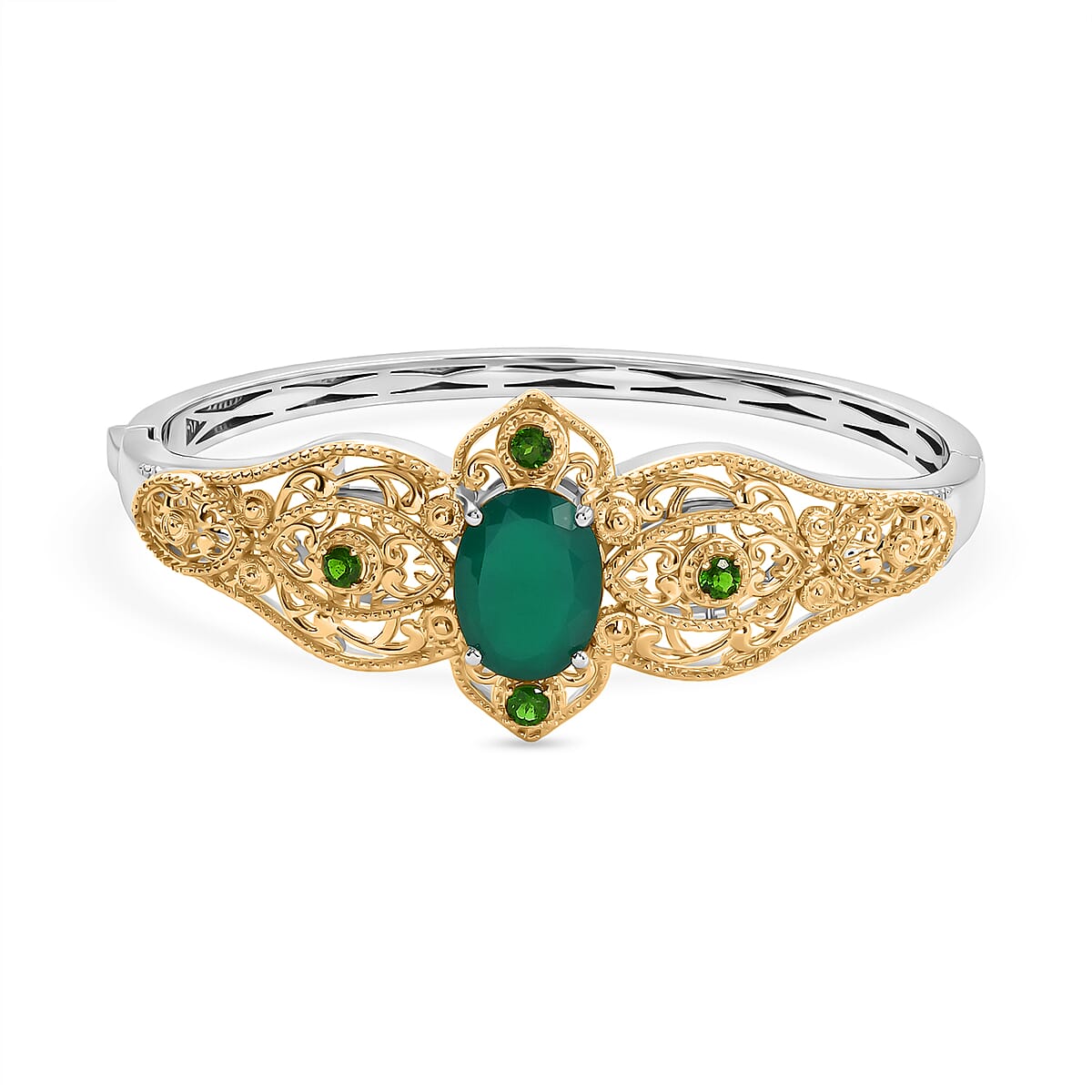 EverTrue Verde Onyx and Chrome Diopside 8.50 ctw Bangle Bracelet in in 18K YG Plated and Platinum Bond (6.5 In)