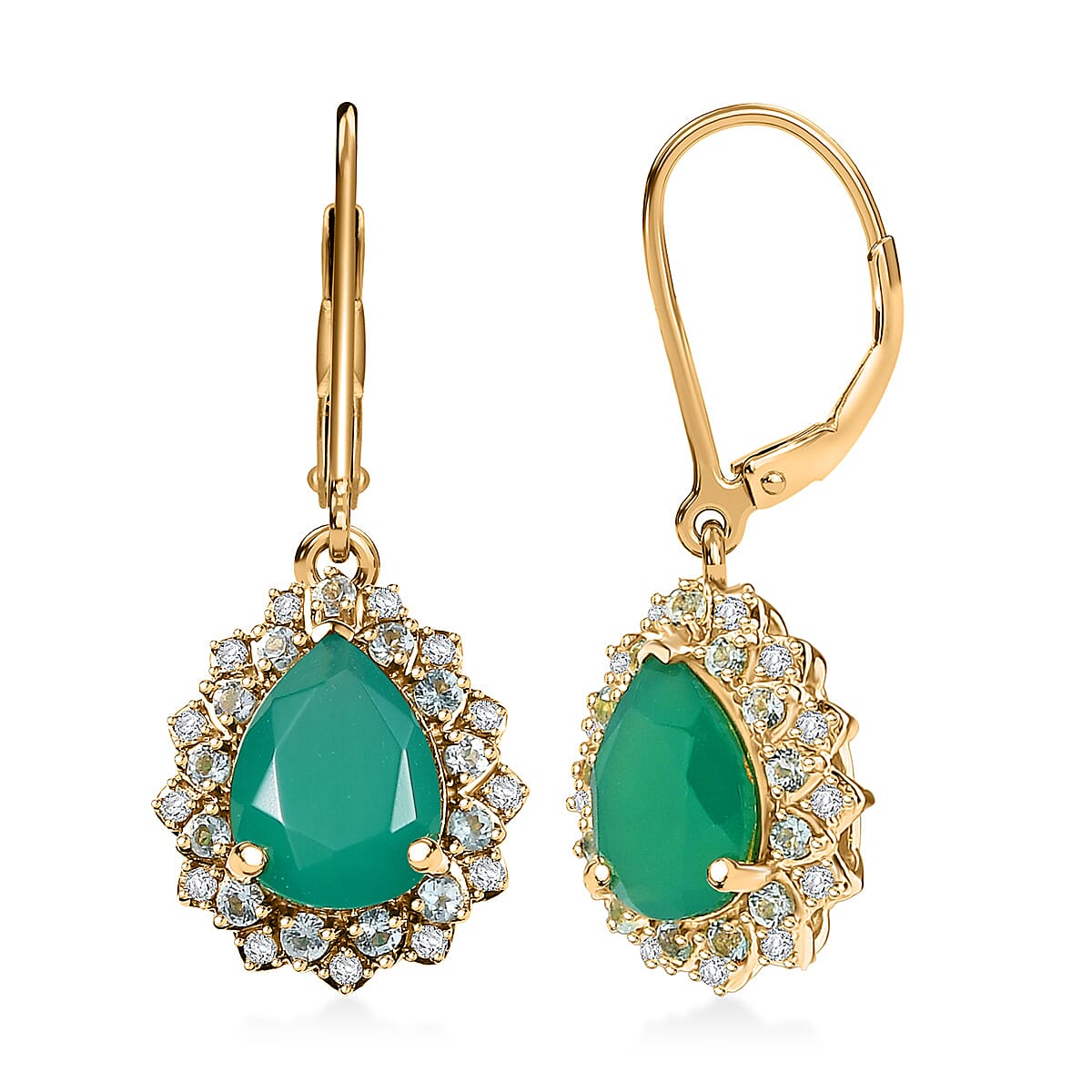 EverTrue Verde Onyx and Multi Gemstone 3.75 ctw Earrings in 18K Yellow Gold Plated