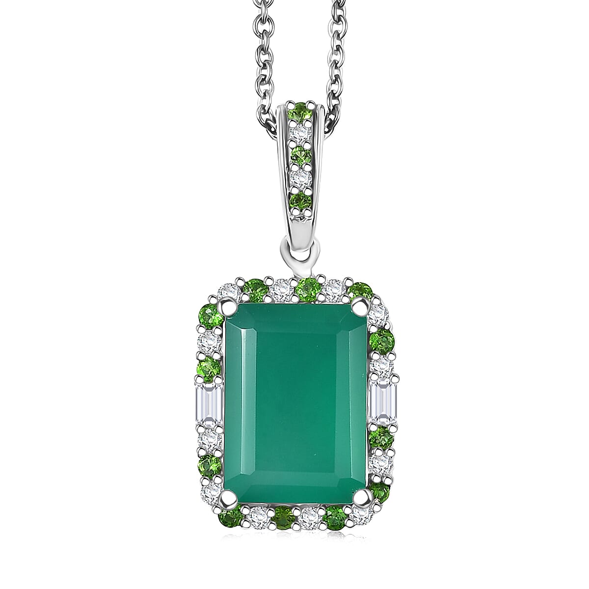EverTrue Verde Onyx and Multi Gemstone 7.90 ctw Garden Mosaic Pendant in Platinum Bond with Stainless Steel Necklace 20 Inches