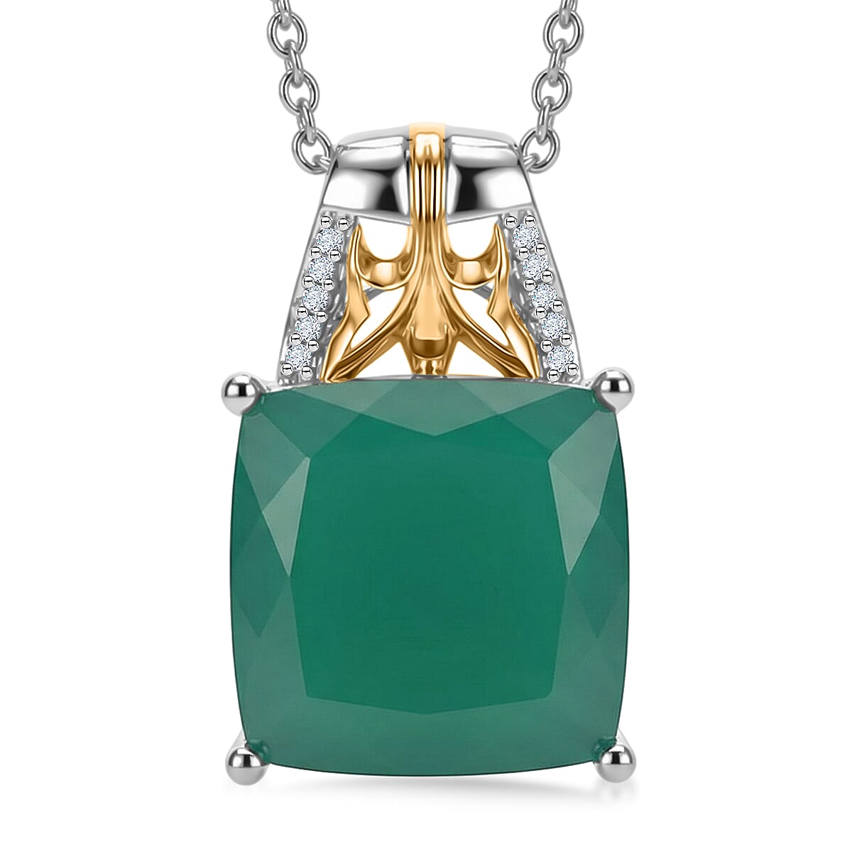EverTrue Verde Onyx and White Zircon 11.50 ctw Pendant in 18K YG Plated and Platinum Bond with Stainless Steel Necklace 20 Inches