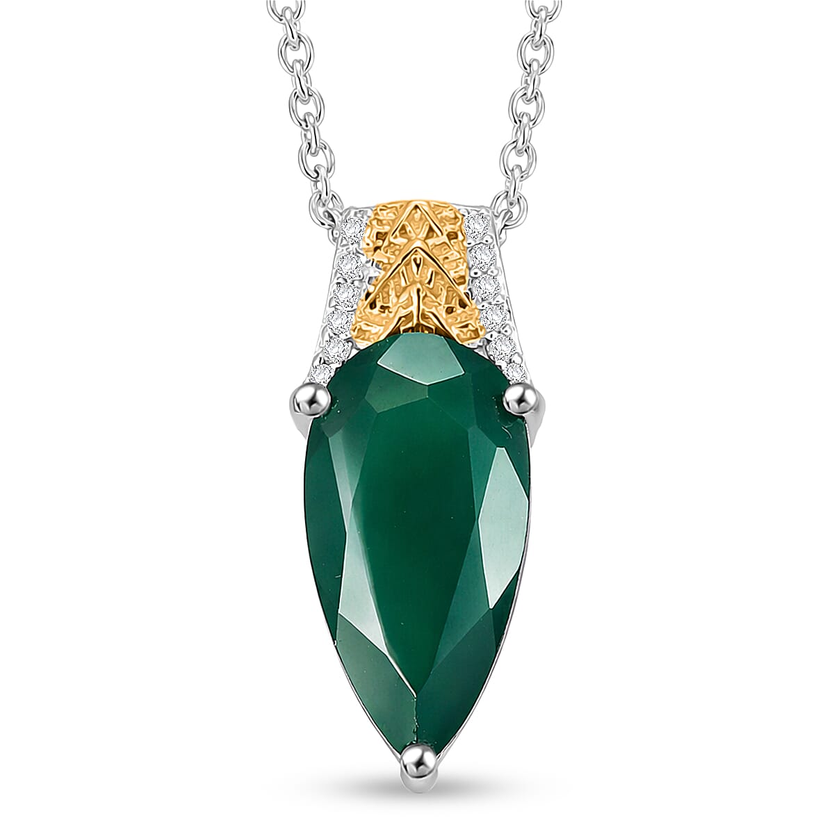 EverTrue Verde Onyx and White Zircon 3.80 ctw Pendant in 18K YG Plated and Platinum Bond with Stainless Steel Necklace 20 Inches