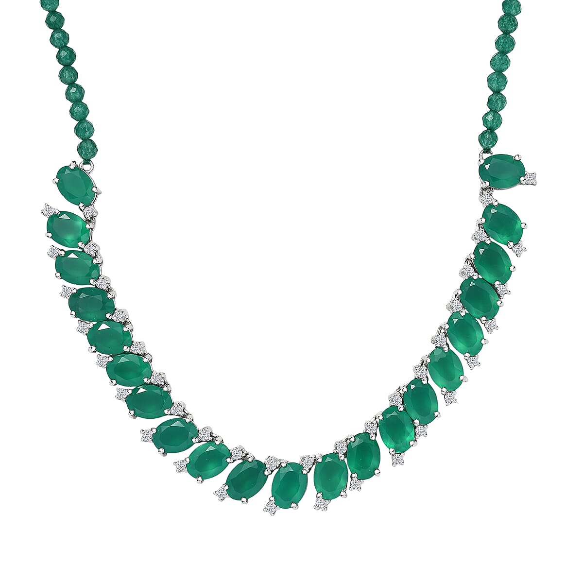EverTrue Verde Onyx and White Zircon 31.65 ctw Necklace in Platinum Bond 18-20 Inches
