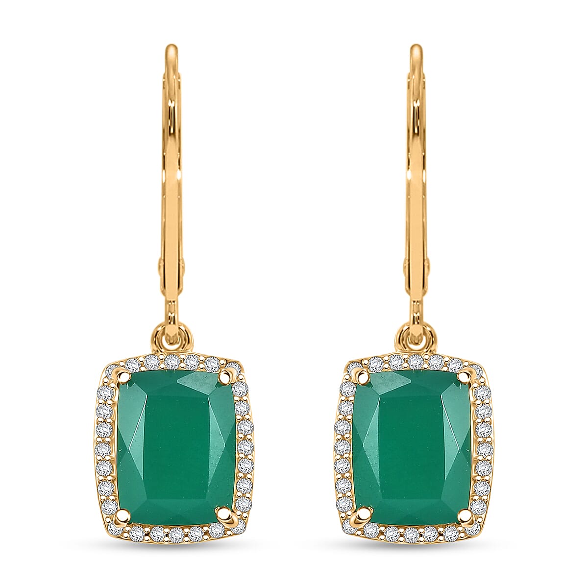 EverTrue Verde Onyx and White Zircon 4.60 ctw Lever Back Earrings in 18K YG Plated