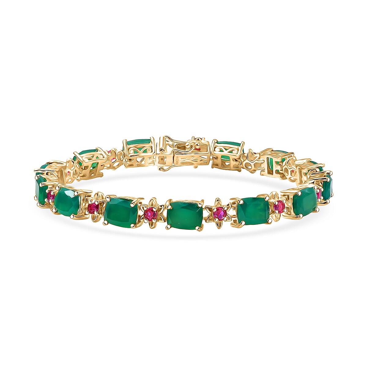 EverTrue Verde Onyx, Synthetic Ruby Bracelet in 18K YG Plated (7.25 In) 19.20 ctw