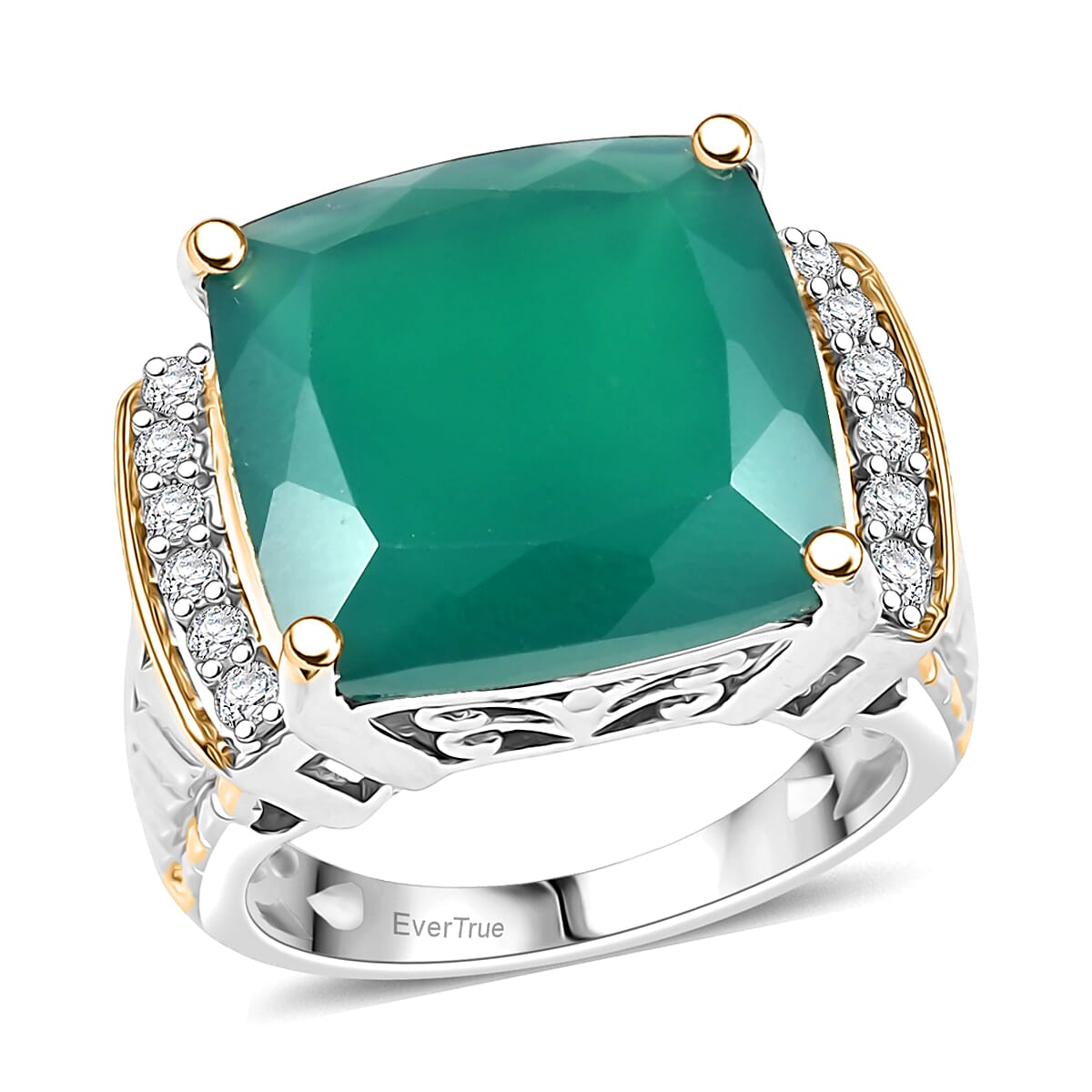 EverTrue Verde Onyx, White Zircon Ring in 18K YG Plated and Platinum Bond 12.65 ctw (Size 7.0)