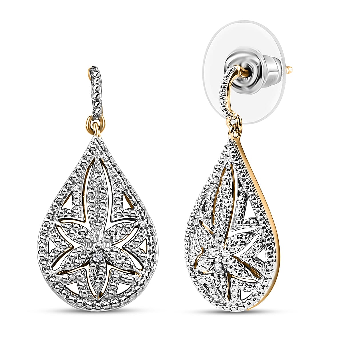 EverTrue White Diamond Accent Floral Earrings in 18K YG Plated and Platinum Bond