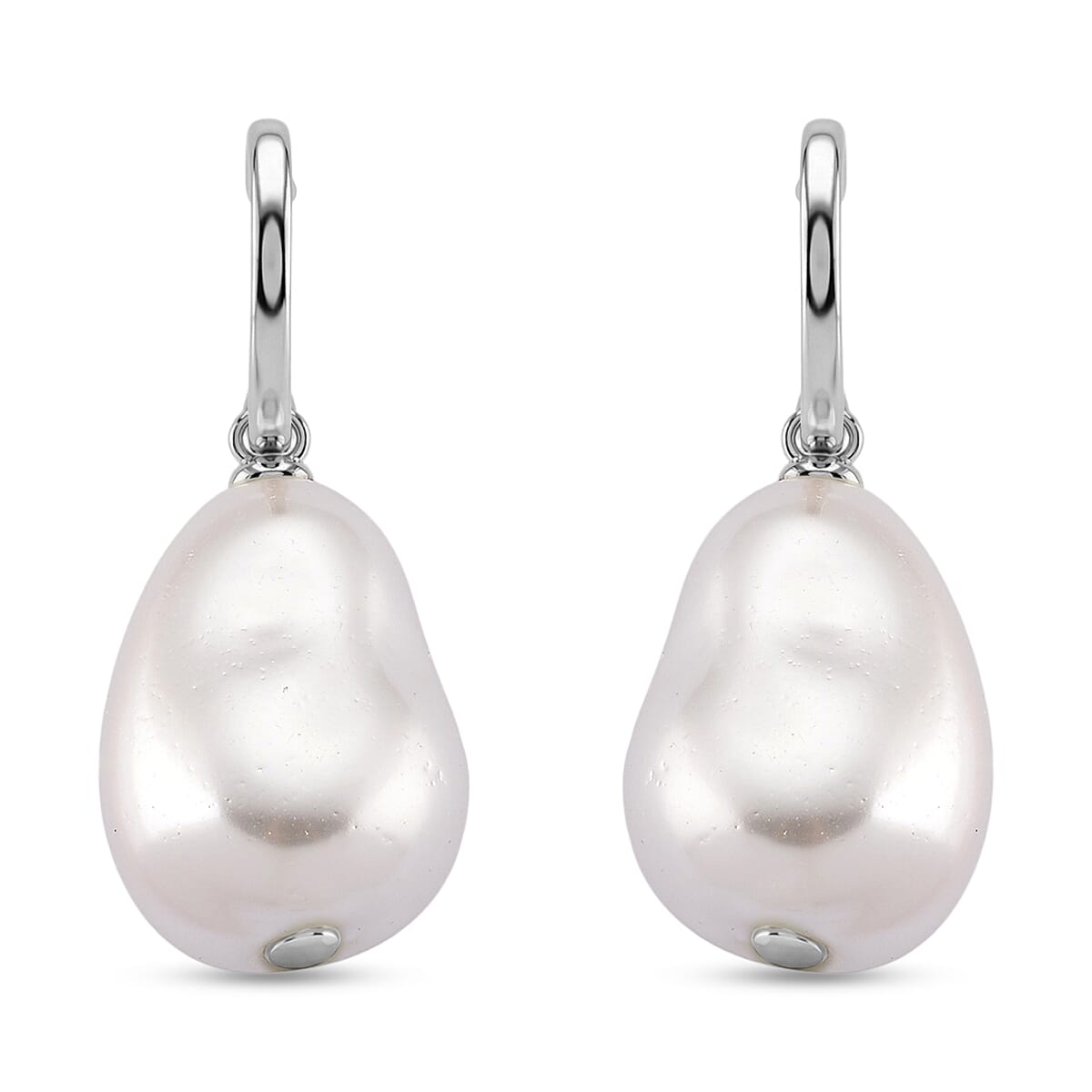 EverTrue White Shell Pearl Fancy Earrings in Silvertone and Stainless Steel