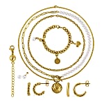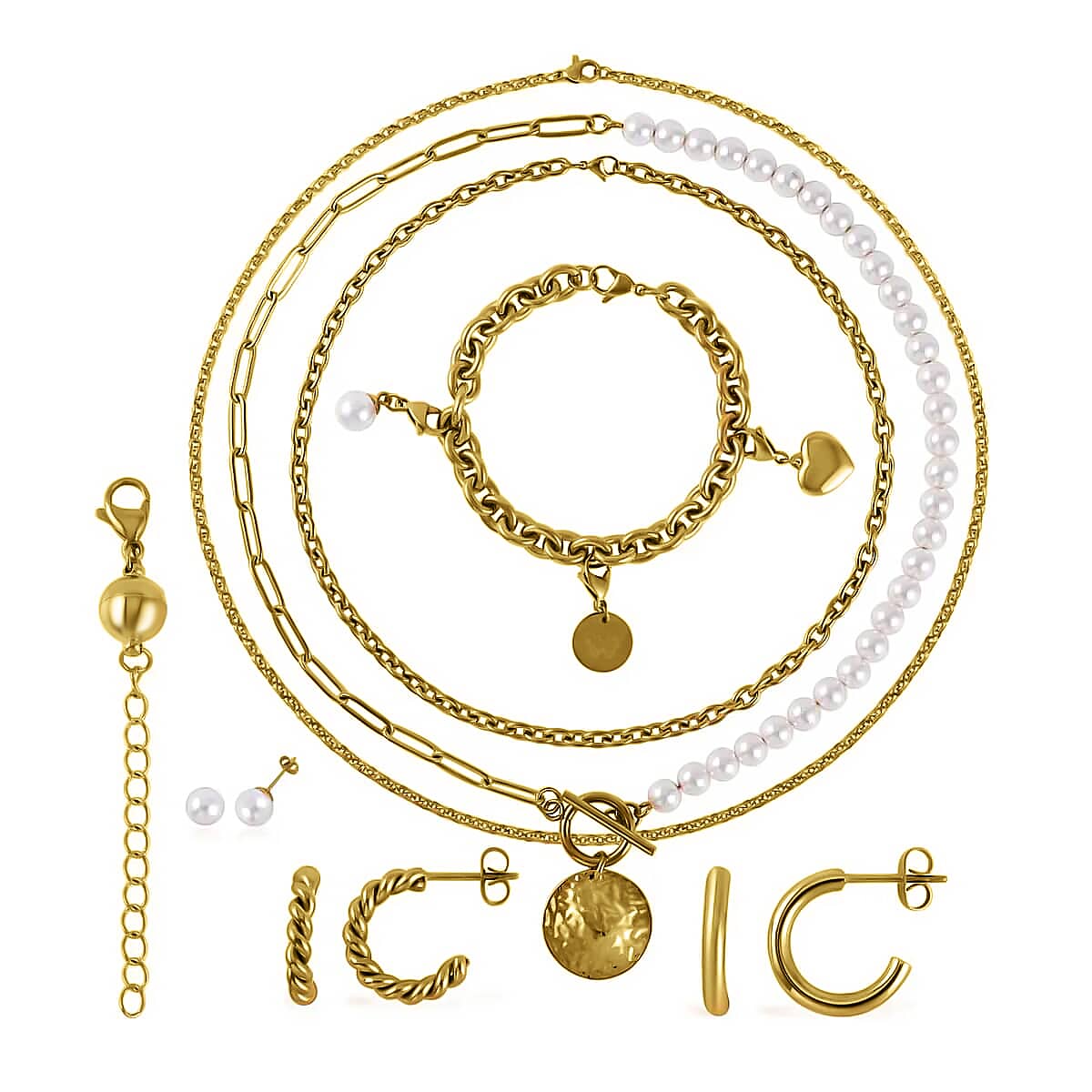 EverTrue White Shell Pearl Jewelry, 3 Pearl Earrings, 3 Pearl Necklaces (16, 18, 20 Inch Necklace), 1 Pearl Bracelet, 3 Charms and 1 Magnetic Extender, ION Plated YG Stainless Steel Jewelry Set