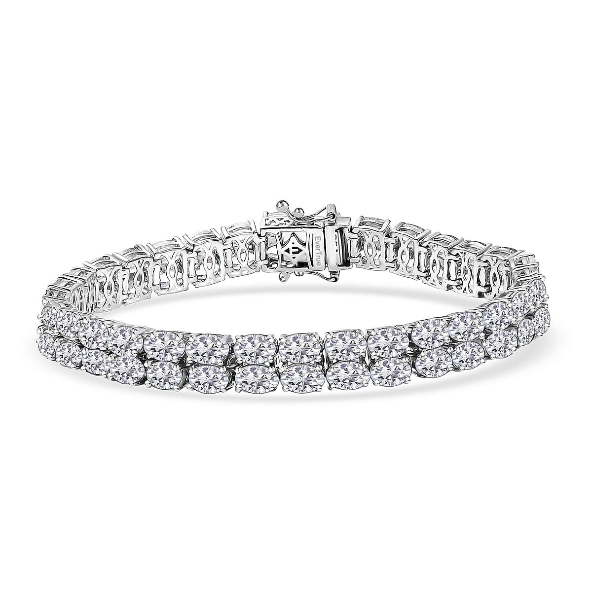 EverTrue White Topaz 37.25 ctw Two Row Carpet Bracelet in Platinum Bond (8.00 In)
