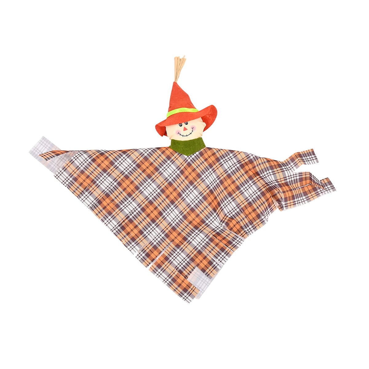 Fall Harvest Shrouded Scarecrow Orange Plaid 14 Inches Hanging Decor