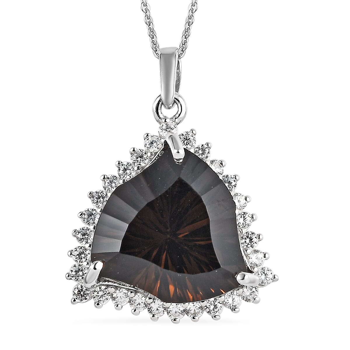 Fancy Cut Brazilian Smoky Quartz and White Zircon Pendant Necklace 20 Inches in Platinum Over Sterling Silver 11.85 ctw