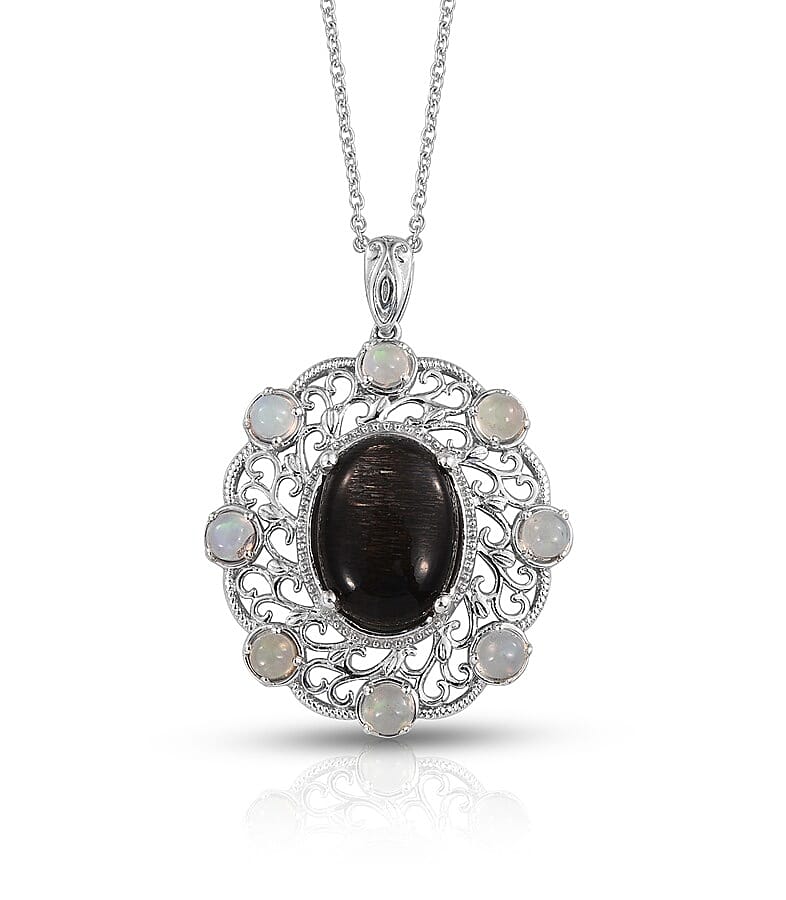 Ranging in color from dark gray to black, Black Feldspar ranges from 6 to 6.5 on the Mohs scale of hardness. The moody and spectral play of color found within the stone is the result of many tiny inclusions that produce a schiller effect. As light plays across the surface of this stone, a variety of colors can be witnessed, ranging from blue and violet to green, yellow, and orange! To maximize this iridescence, Black Feldspar is primarily cut in a cabochon. Occasionally, the stone is also fashioned into beads.