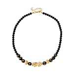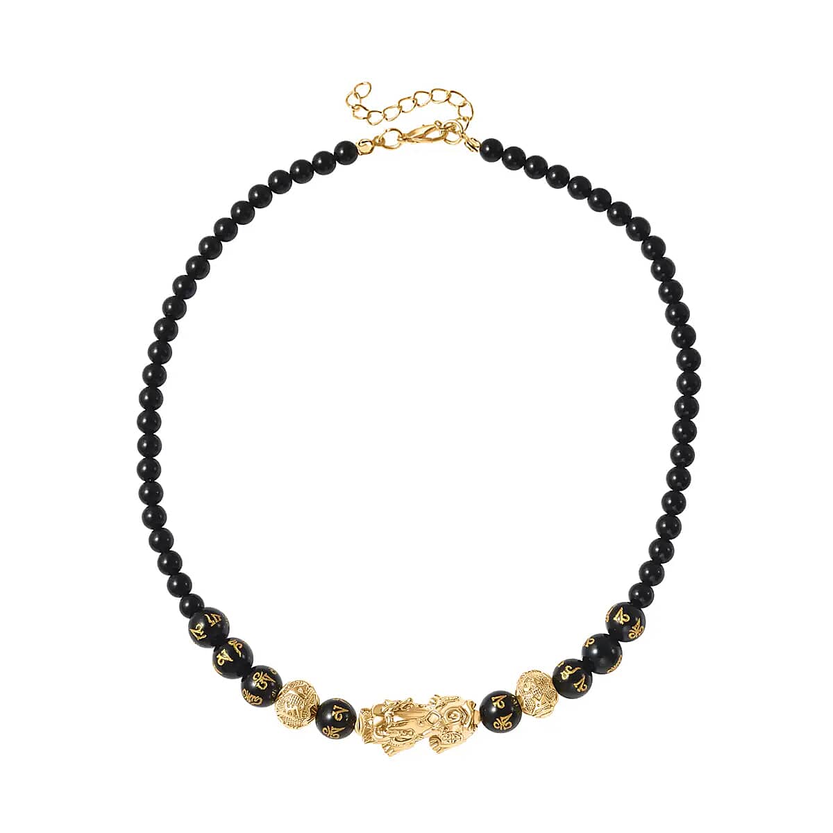 Feng Shui Black Obsidian Beaded Pixiu Necklace in Goldtone,Hand Carved Beads Necklace,Lucky Charm 18-20 Inches 173.50 ctw