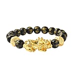 Feng Shui Black Obsidian Carved Beaded Bracelet in Goldtone 6.50 Inches 138.00 ctw