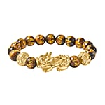Feng Shui Pixiu Charm Yellow Tiger's Eye Carved Beads Stretch Bracelet in Goldtone, Stretchable Bracelet, Good Luck Birthday Gift 112.50 ctw
