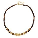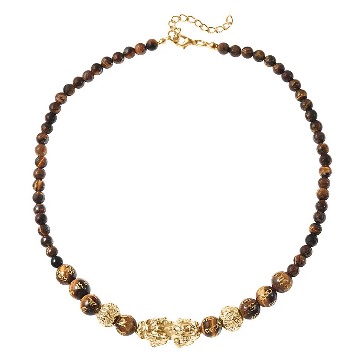 Feng Shui Yellow Tiger's Eye 214.00 ctw Beaded Pi Xiu Necklace in Goldtone, Bead Necklace For Women, Unique Birthday Gifts (18-20 Inches)