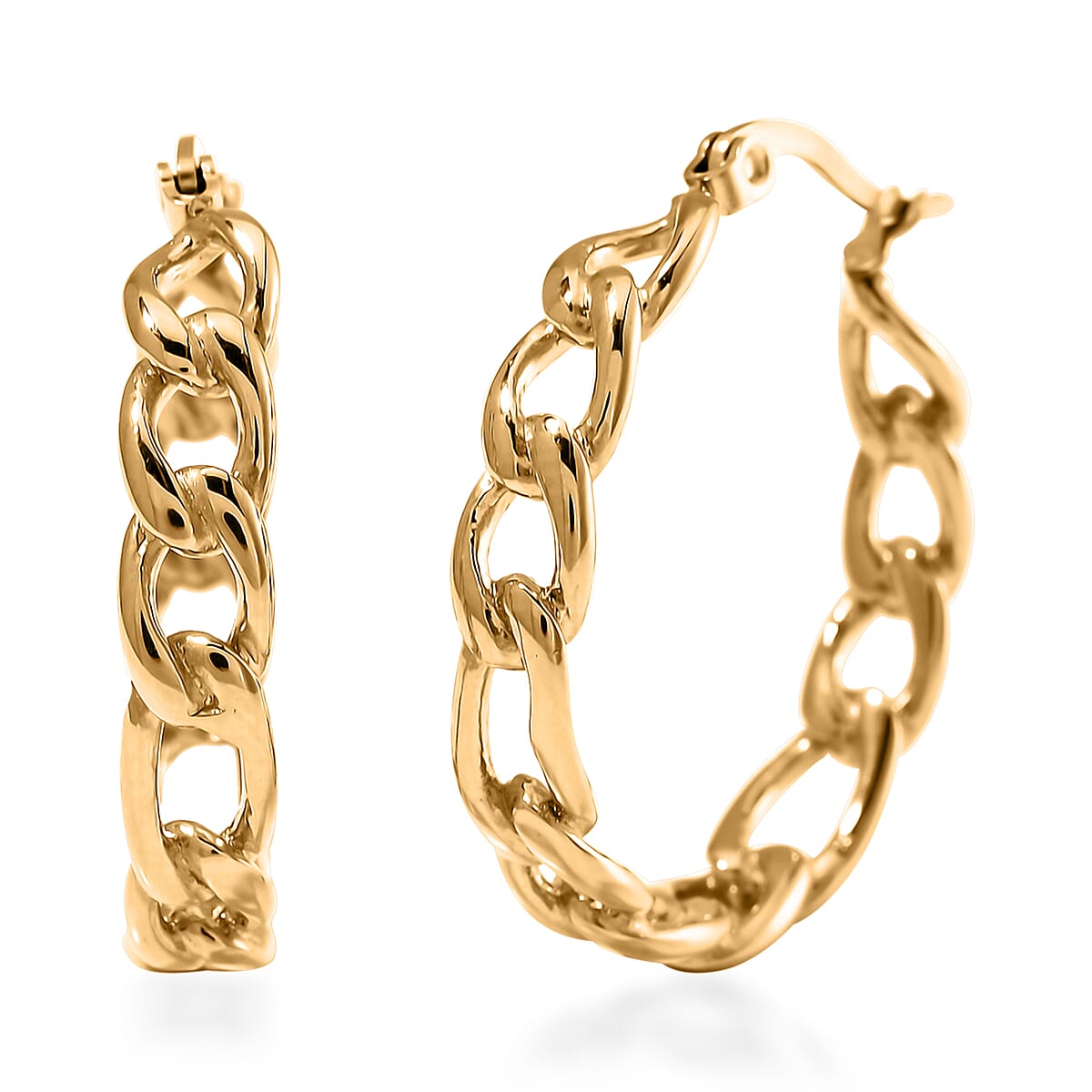 Figaro Chain Hoop Earrings in ION Plated Yellow Gold Stainless Steel