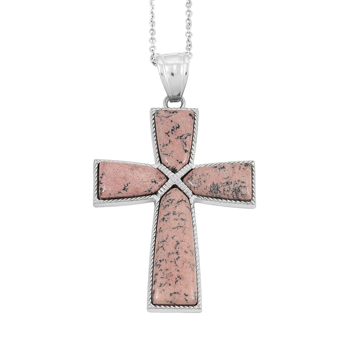 Fire Matrix Jasper Cross Pendant in Silvertone with Stainless Steel Necklace (20 Inches) 18.00 ctw