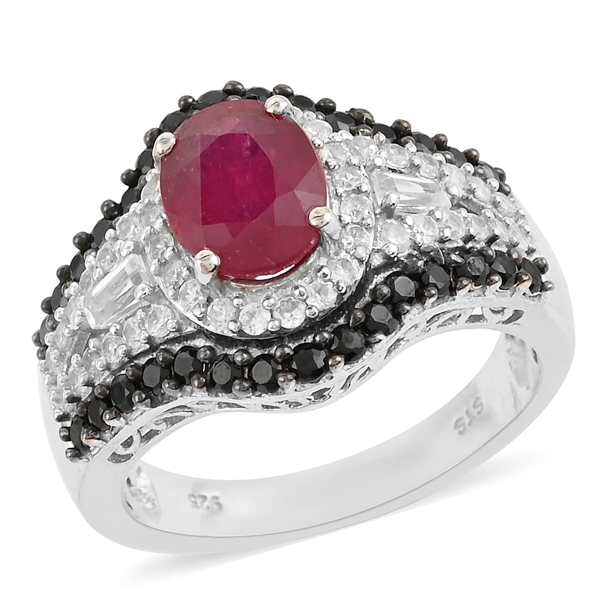 Fissure Filled Ruby and Multi Gemstones Ring in Platinum Over Sterling Silver (Size 10.0) 2.90 ctw
