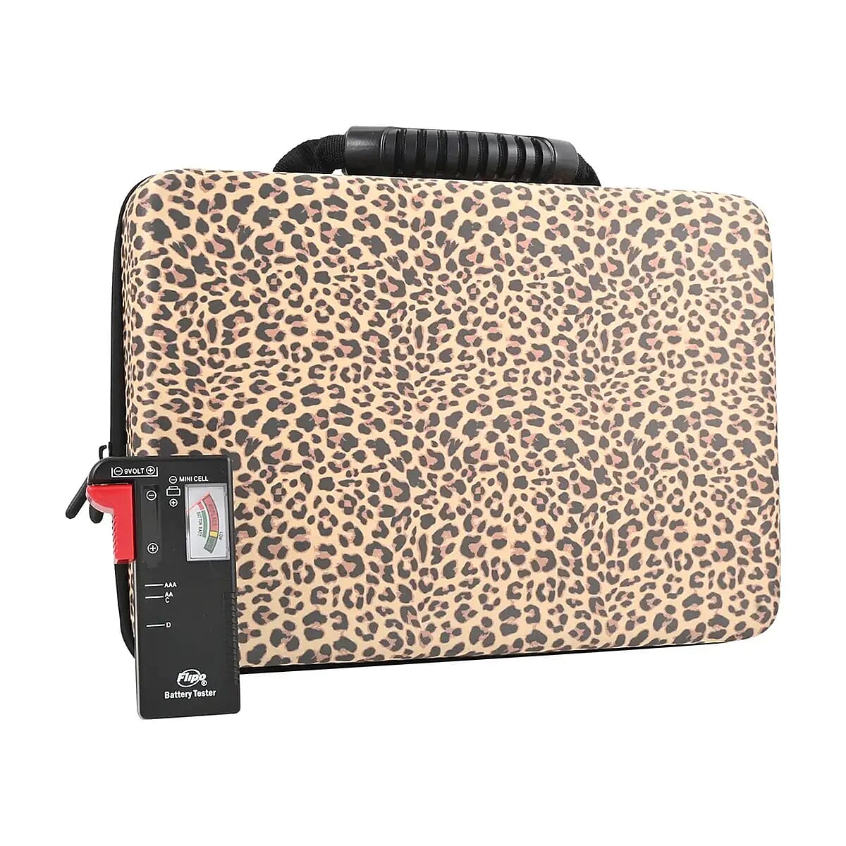 Flipo Battery Storage Case with Universal Battery Tester -Leopard (Holds Up to 148 Batteries)