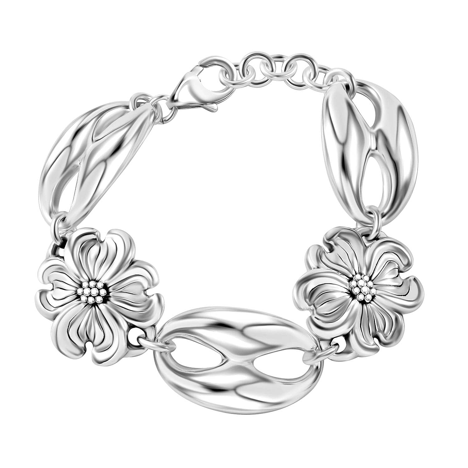 Floral Bracelet in Sterling Silver (7.25 In) 16.58 Grams