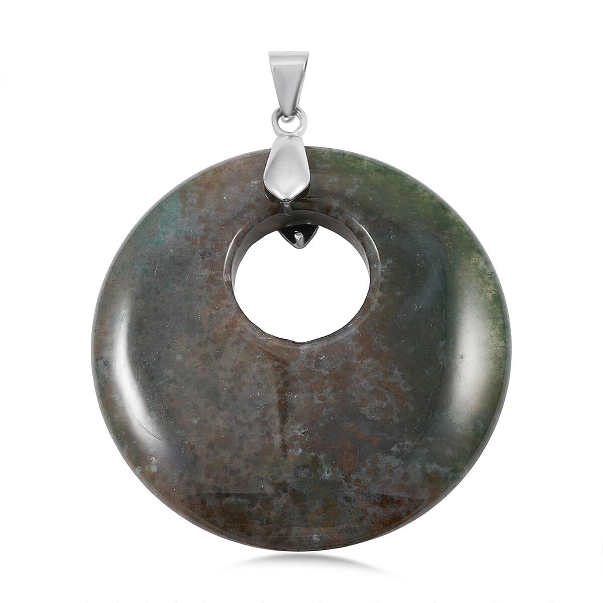 Fossil Coral Jasper 52.35 ctw Donut Pendant in Silvertone with Stainless Steel Necklace (20 Inches)