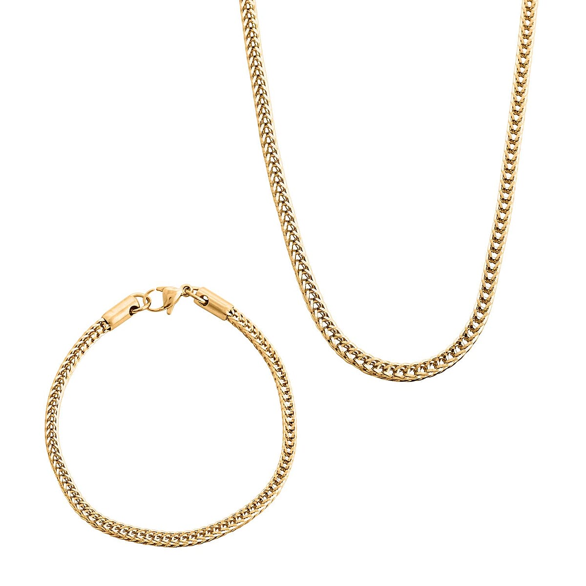 Foxtail Chain Bracelet (7.50In) and Necklace 20 Inches in ION Plated YG Stainless Steel