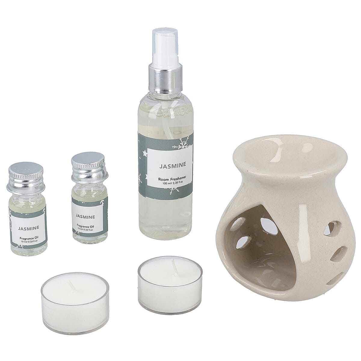 Fragrance Gift Set (Ceramic Burner, 2 Fragrance Oils, 2 Tea-lights & 1 Room Spray) - FRAGRANCE Jasmine