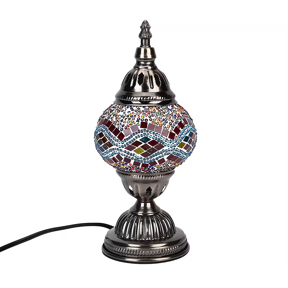 Indulge in a sensory experience with the Turkish Moroccan glass mosaic table lamp, which includes a bulb for immediate use and a set of 10 essential oils for aromatherapy. This lamp combines visual beauty with functionality, featuring a vibrant mosaic design that instantly enhances any space. The accompanying essential oils makes it perfect for relaxation and mood enhancement.