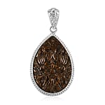 Freshened Tigers Eye Carved Fancy Pendant without Chain in Platinum Over Copper with Magnet 12.20 ctw