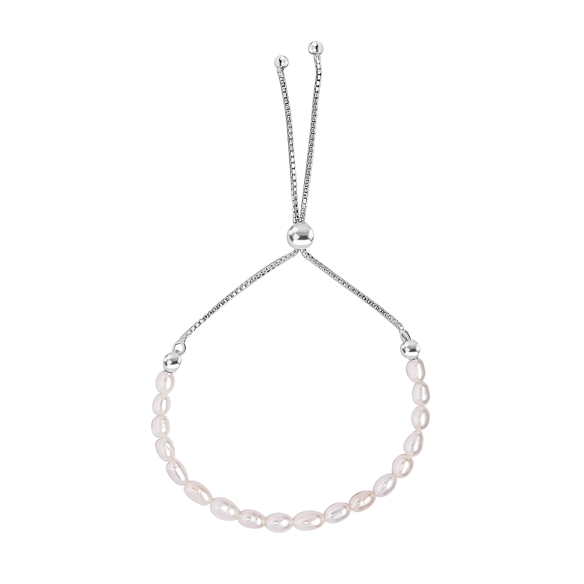 Freshwater Pearl 7-8mm Beaded Bolo Bracelet in Sterling Silver