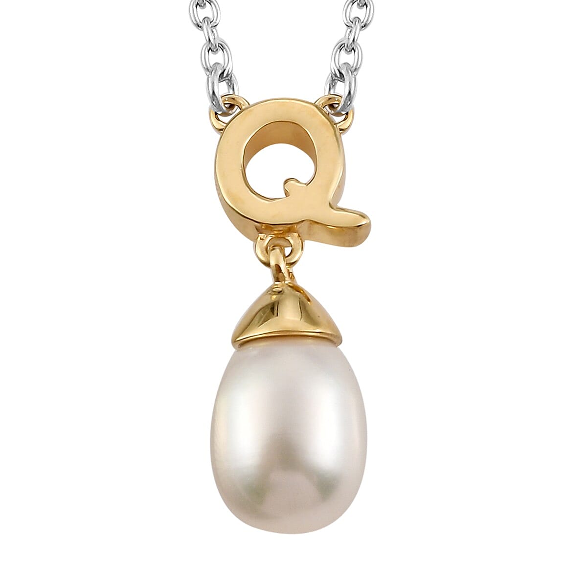 Freshwater Pearl Initial Q Drop Pendant Necklace (18 Inches) in Vermeil YG Over Sterling Silver and Stainless Steel