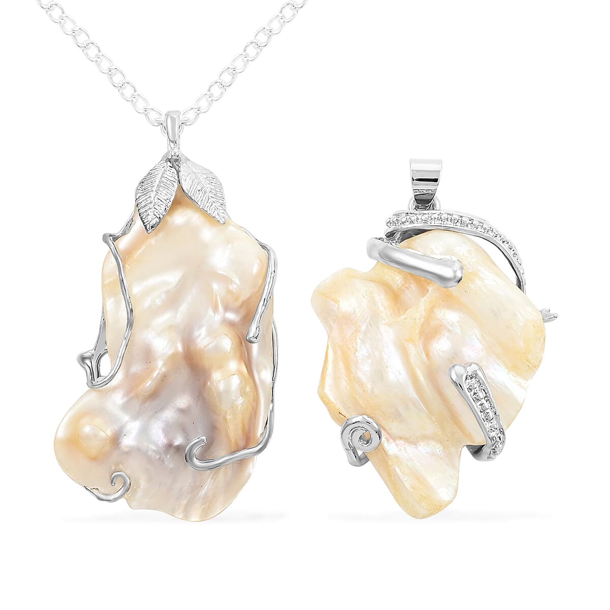 Freshwater Pearl Set of 2 Pendants Necklace 18 Inches in Silvertone
