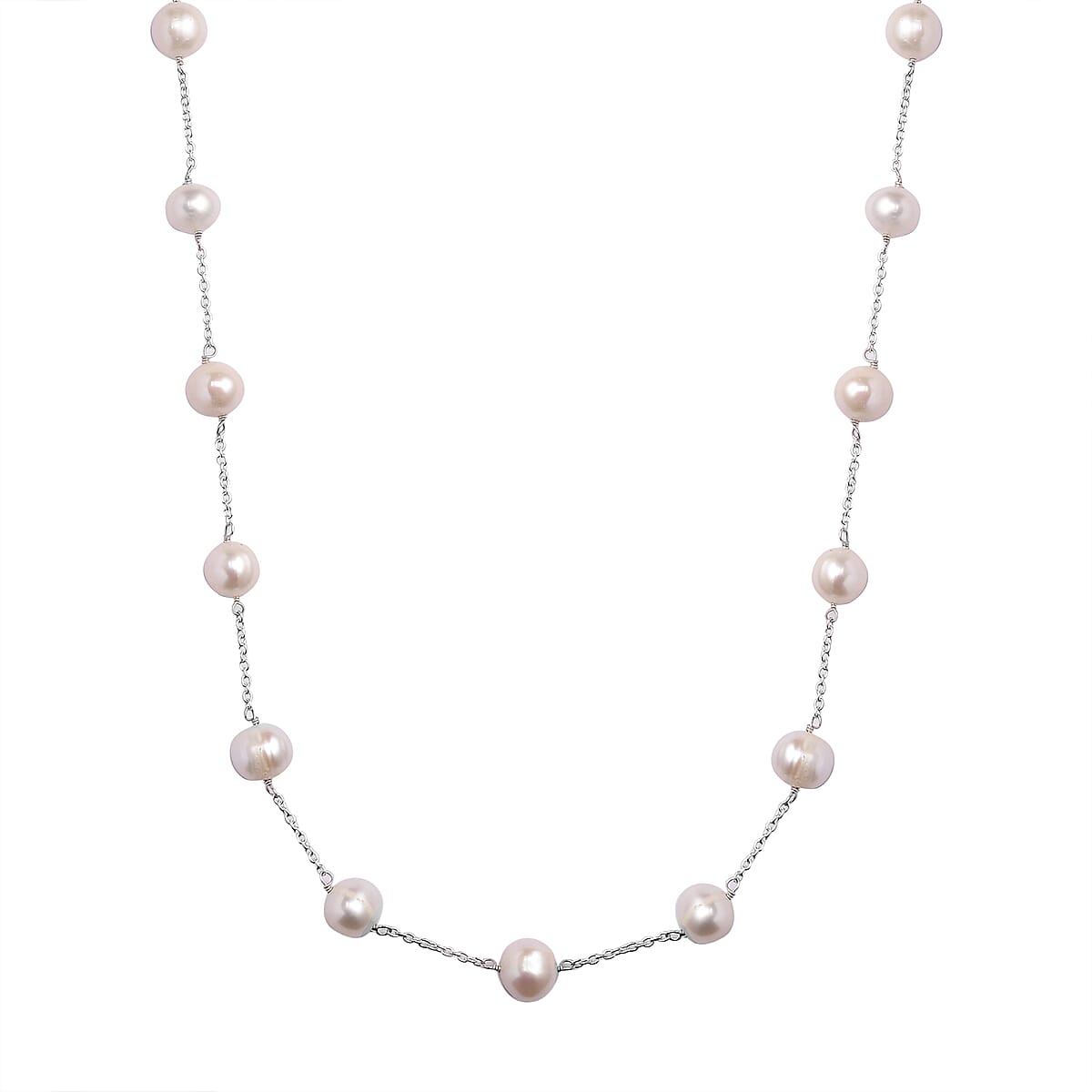 Freshwater Pearl Station Necklace 18 Inches in Sterling Silver 41.60 ctw