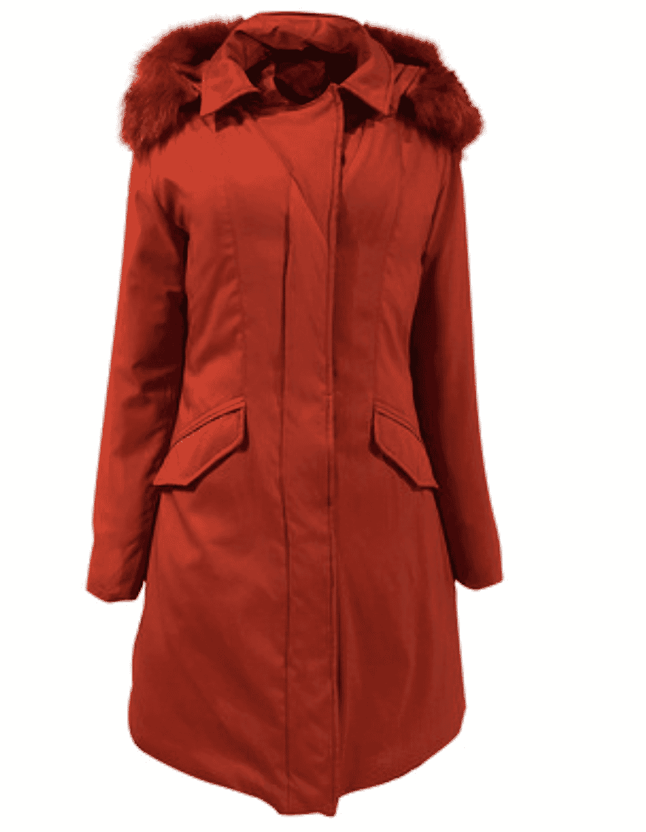 FTX Long Down Alternative Puffer Jacket with Removable Hood - Rust Red - (M)